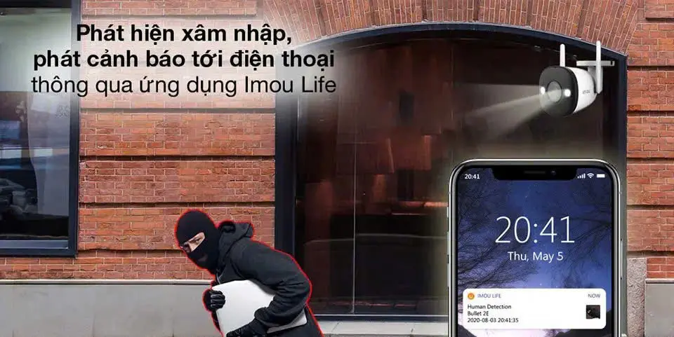 • Tính năng: Quan sát từ xa, cảnh báo chuyển động, đàm thoại 2 chiều.