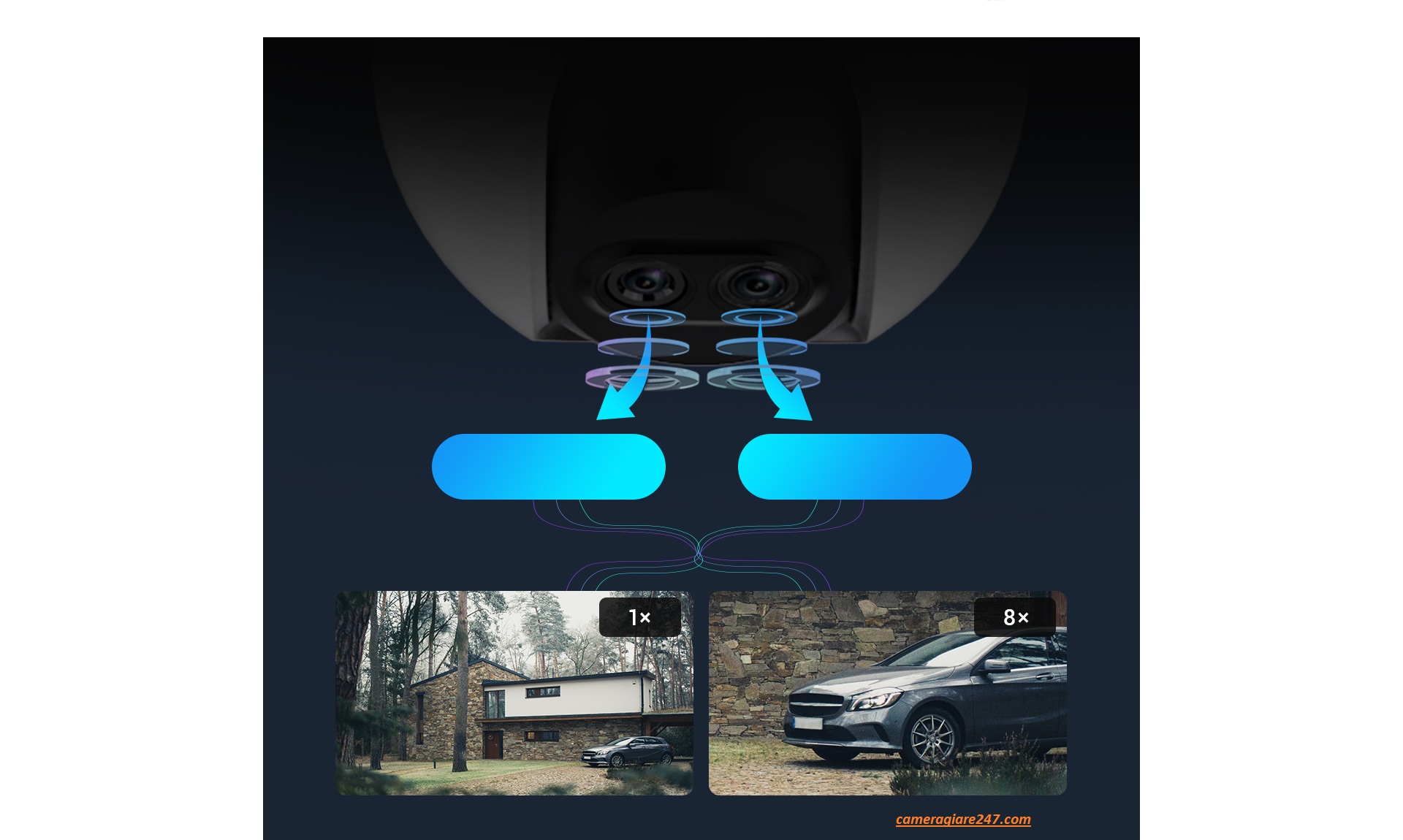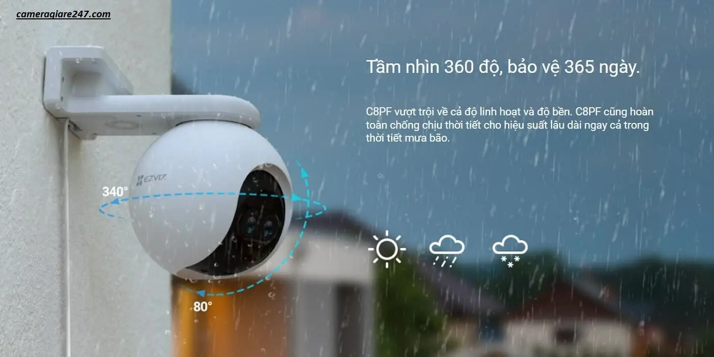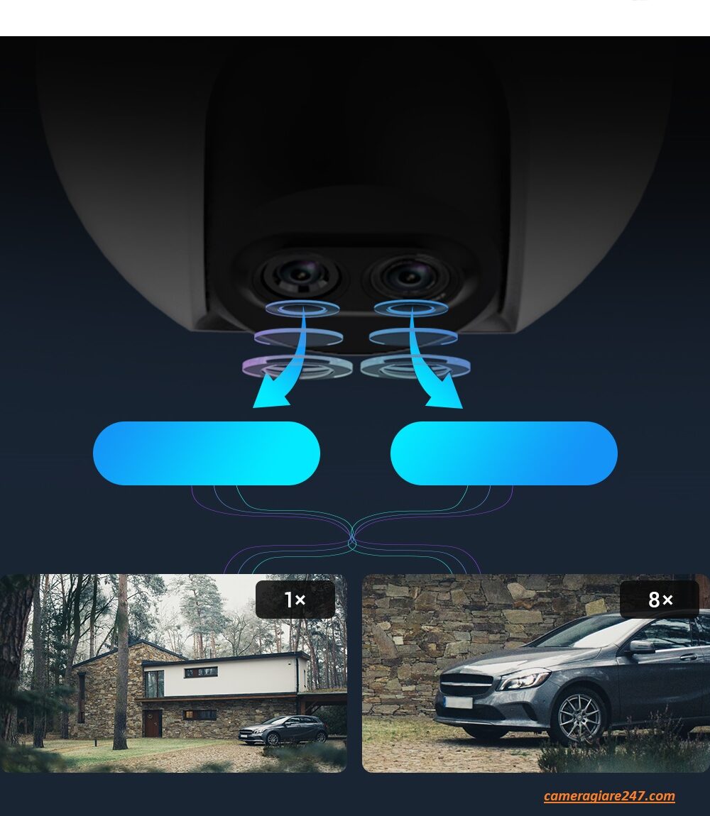 Camera wifi ezviz C8PF 2MP – Zoom 8X, Xoay 360, Ống kính kép