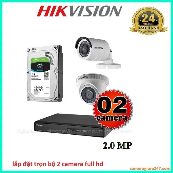 Lắp đặt trọn bộ 2 camera giám sát 2.0M Hikvision