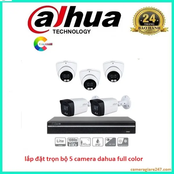 lắp đặt trọn bộ 5 camera dahua 2.0 ful cloor có màu 24/24