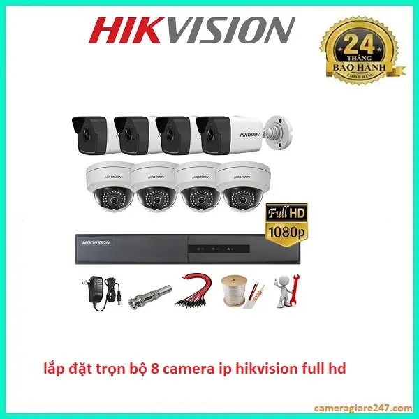 + 8 Camera quan sát ip Hikvision 1080P. (Bảo hành 24 tháng)
