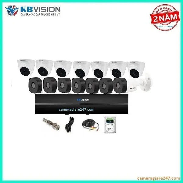 Trọn bộ 14 camera quan sát kbvision chính hảng full hd thích hợp giám sát cho cửa hàng, nhà ở, quán xá… camera độ phân giải 2.0MP (1080P) cho hình ảnh sắc nét, tầm quan sát 20m và hỗ trợ hồng ngoại quán sát ban đêm 24/24